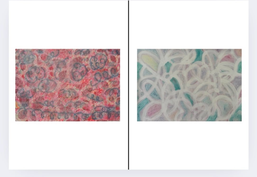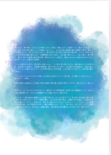 詩的なテキストと、和紙に描かれたパステル/アクリル画による構成。